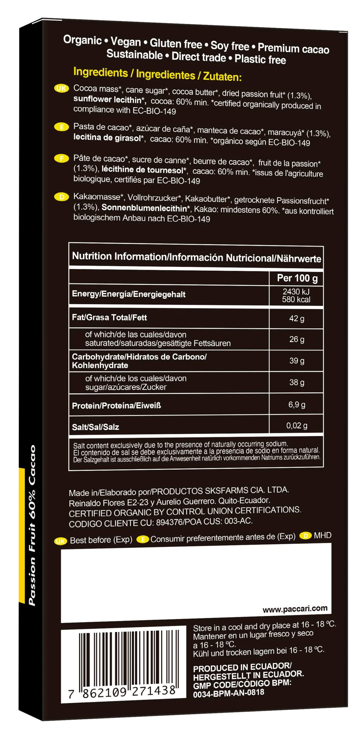 La sal, suave y mineral, resalta las notas afrutadas y complejas del cacao Arriba Nacional, mientras que los nibs aportan un crujido satisfactorio y un golpe extra de sabor a cacao. Es un equilibrio magistral entre dulce, salado y amargo. Como todos los chocolates Pacari, es vegano, orgánico y producido bajo un estricto modelo de Comercio Directo.